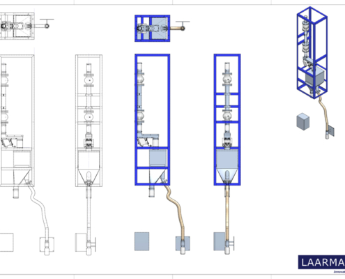 In order to get a smooth homogeneous flow the product is released in a vibratory feeder. It is possible to change the sampling time in order to get the desired amount of sample. During sampling the sample is collect in bottles of 1000 or 500 ml. These samples are than transported to the lab for further analysis.